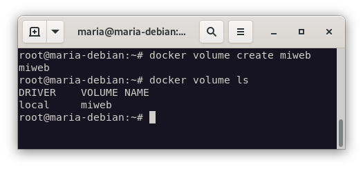 - Crearemos un volumen docker que se llame miweb.