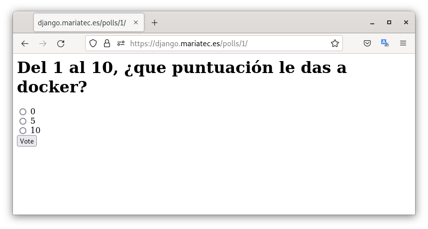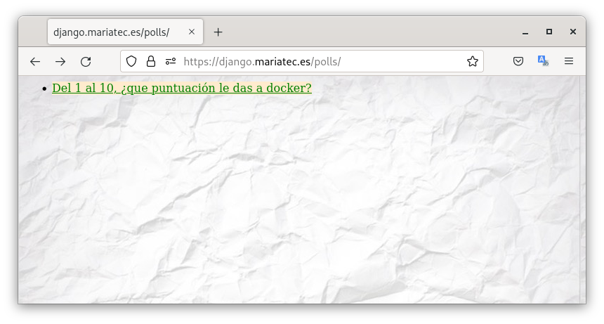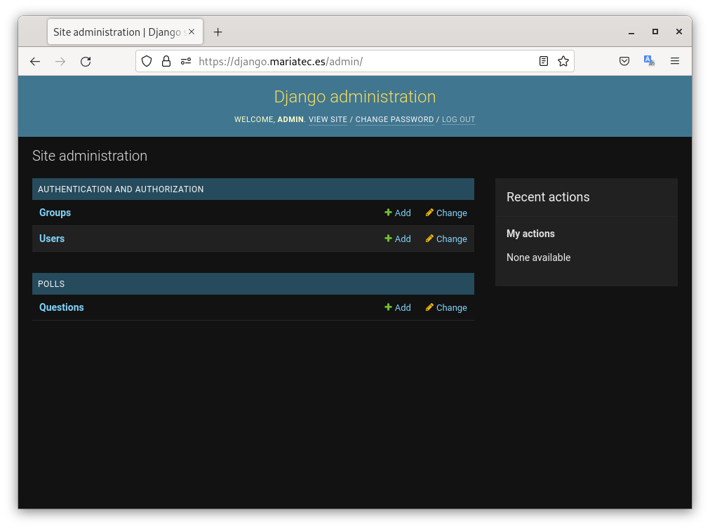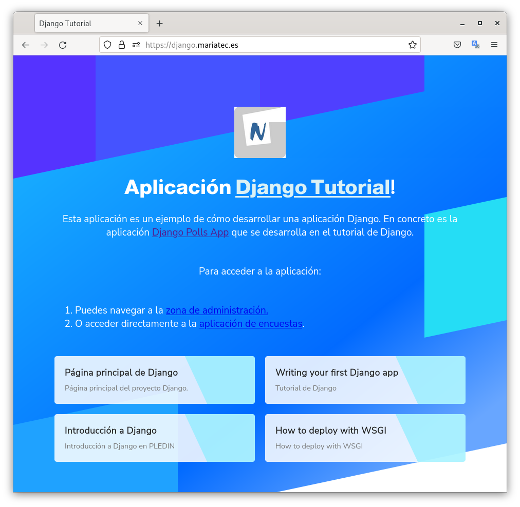 Si accedemos desde nuestro navegador a la dirección https://django.mariatec.es podemos ver que accedemos a la aplicación.