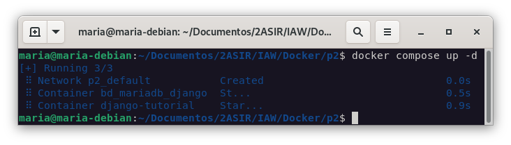 docker run -d --name mariadb -v vol_polls:/var/lib/mysql --network net_django -e MARIADB_ROOT_PASSWORD=admin -e MARIADB_USER=django -e MARIADB_PASSWORD=admin -e MARIADB_DATABASE=django mariadb