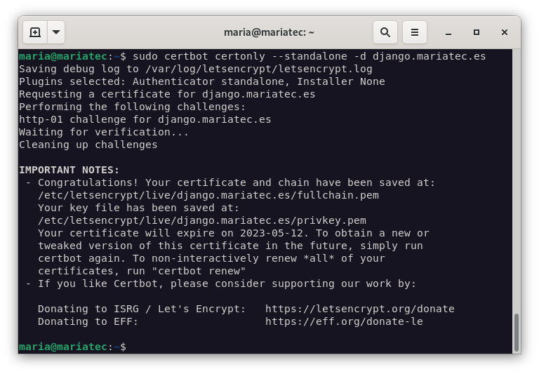 certbot certonly --standalone -d django.mariatec.com