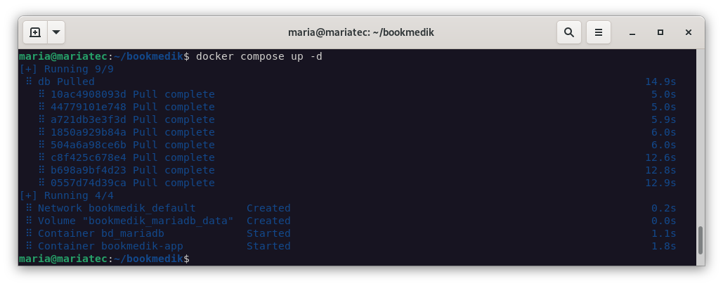 Para ello, vamos a utilizar la imagen de legnakra/bookmedik:v1 que ya tiene el fichero docker-compose.yaml para generar la nueva imagen.