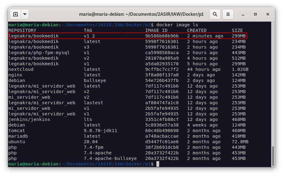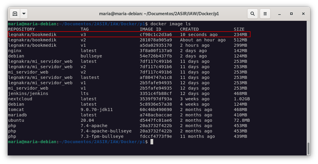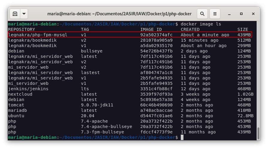 Si ejecutamos docker images, podremos ver que la imagen se ha creado correctamente:
