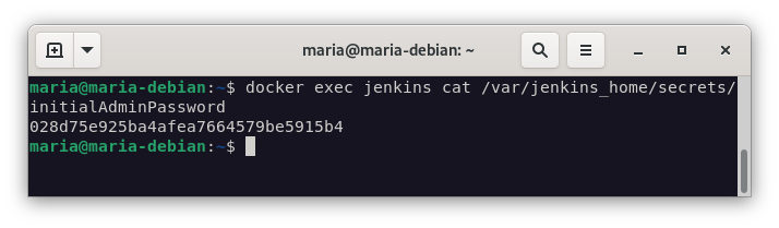 docker exec jenkins cat /var/jenkins_home/secrets/initialAdminPassword