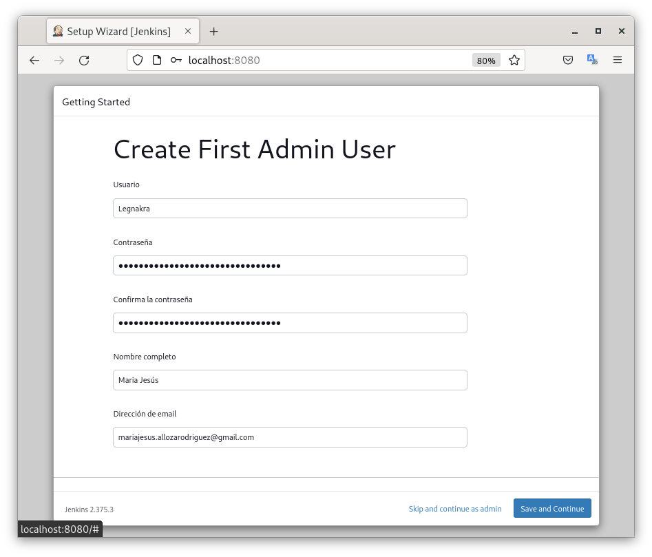 - Seleccionamos la dirección de Jenkins y pulsamos en continuar.