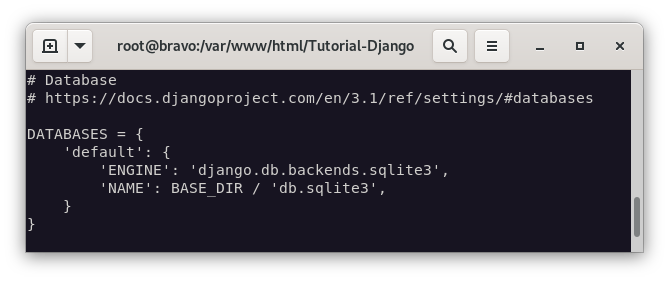 Como podemos ver, la base de datos que vamos a crear es db.sqlite3.