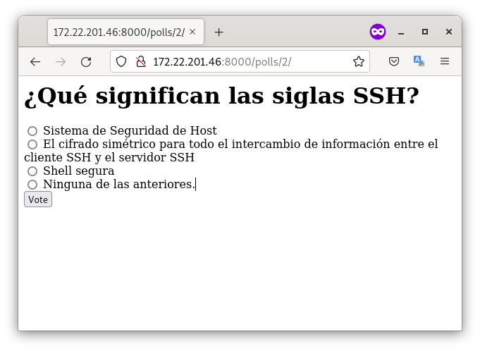 - Comprobamos que podemos acceder a la aplicación desde el navegador: