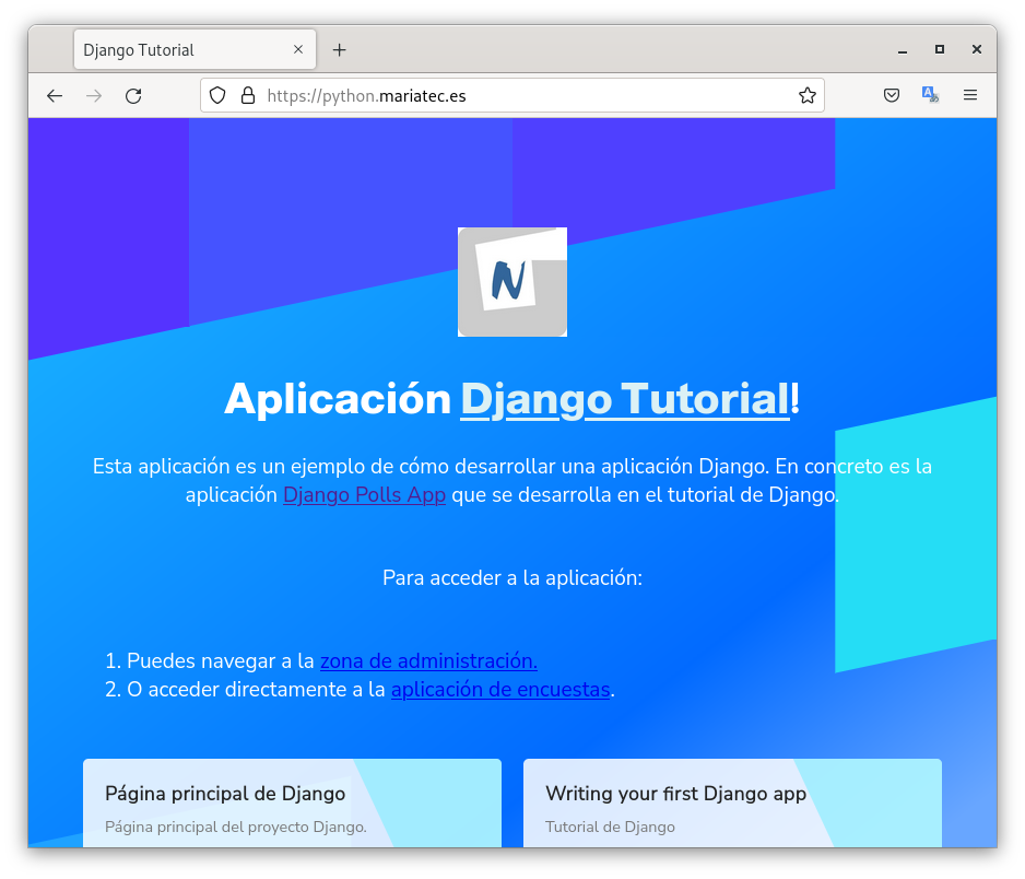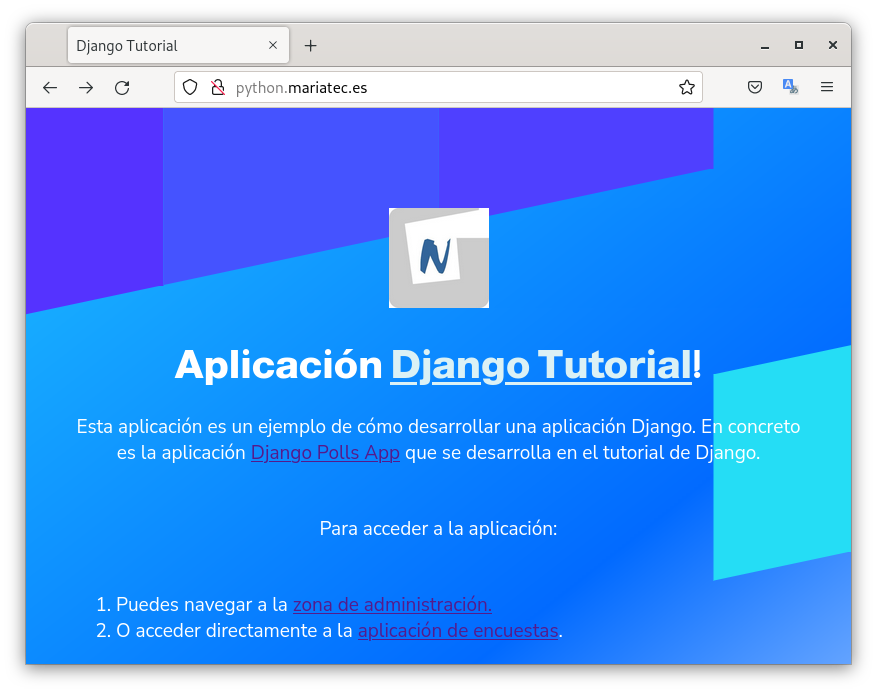 python.mariatec.es. ¿Se muestra la imagen de fondo de la aplicación? ¿Se ve de forma adecuada la hoja de estilo de la zona de administración?