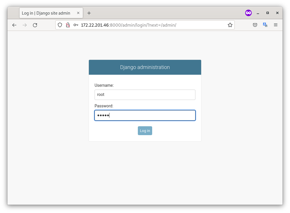 - Comprobamos que podemos acceder a la aplicación desde el navegador, sobre todo en la zona de administración: