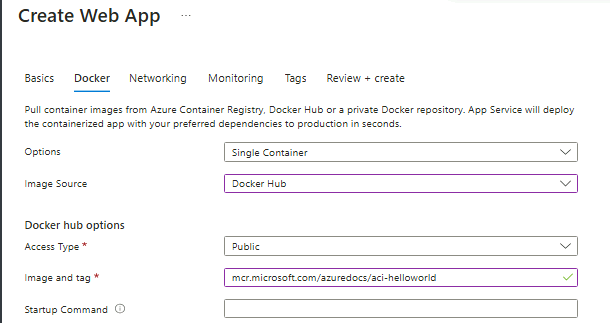 | Imagen y etiqueta | mcr.microsoft.com/azuredocs/aci-helloworld |