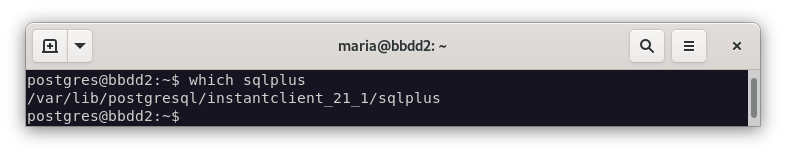 postgres@bbdd2:~$ export PATH=$PATH:$ORACLE_HOME