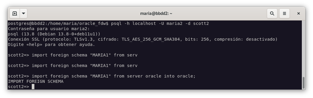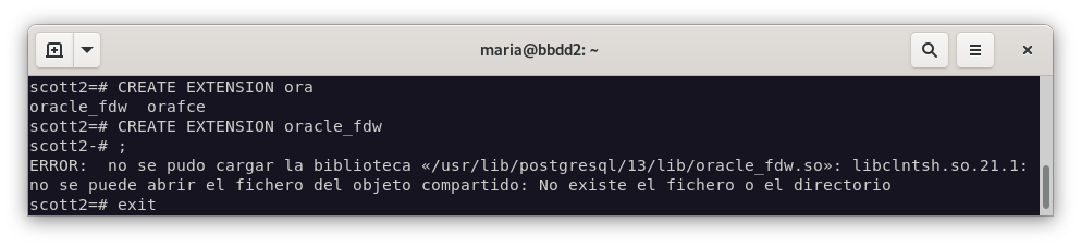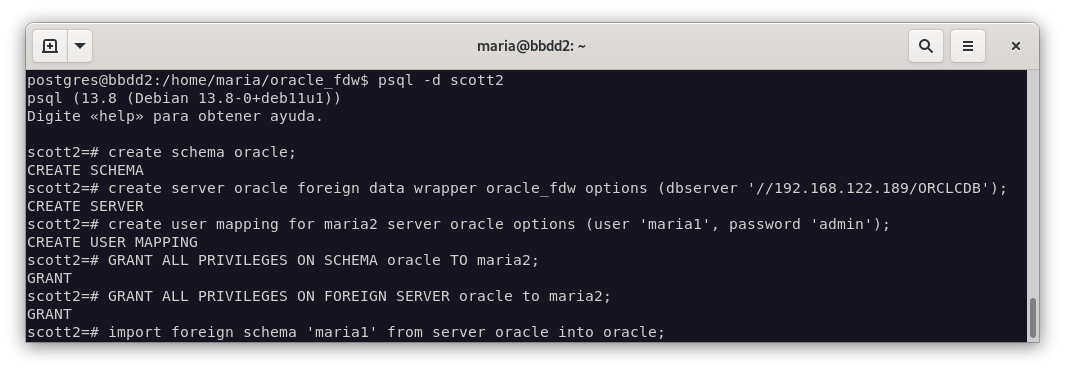 Una vez comprobado que todo funciona correctamente, vamos a instalar el paquete de oracle_fdw.