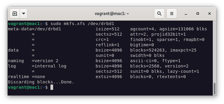mkfs.xfs /dev/drbd1