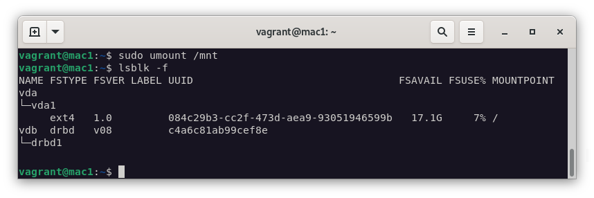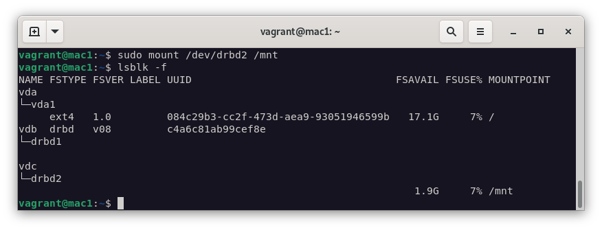 mount /dev/drbd1 /mnt