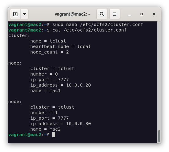 o2cb add-node tclust mac2 --ip 10.0.0.30