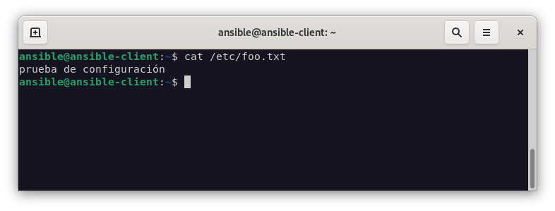 all: children: servidores: hosts: ansible-client: ansible_ssh_host: 192.168.122.120 ansible_ssh_user: ansible ansible_ssh_private_key_file: /home/maria/.ssh/id_rsa -