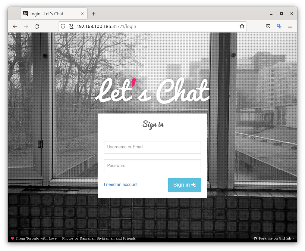 Lets-Chat es una aplicación de mensajería instantánea basada en Node.js y MongoDB. Es una aplicación de código abierto que se puede desplegar en cualquier entorno de forma sencilla. En este ejercicio vamos a desplegar Lets-Chat en Kubernetes.