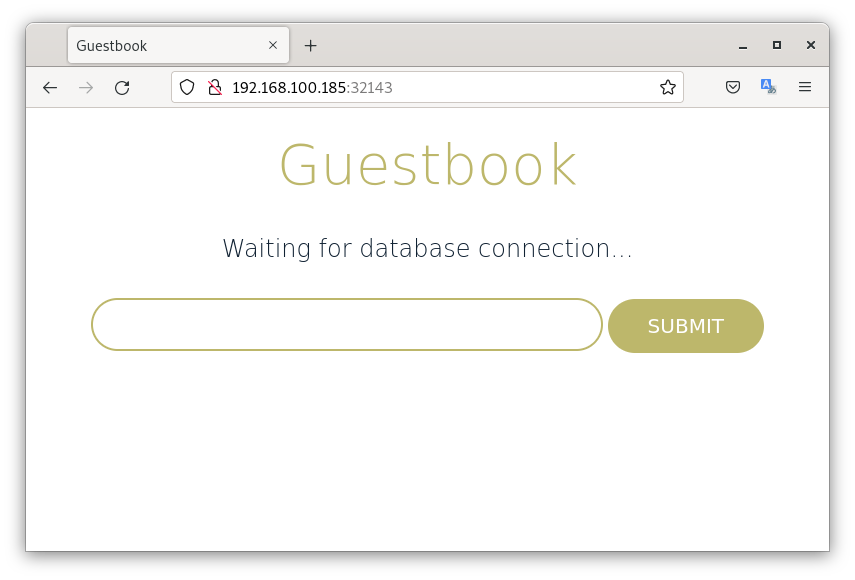 Pero claro, no funciona, ¿por qué? Porque la aplicación guestbook necesita conectarse a la base de datos redis, y no la encuentra. Para ello vamos a crear el Service para acceder a la base de datos. De esta forma, conectaremos el frontend con el backend, donde este último será de tipo ClusterIP.