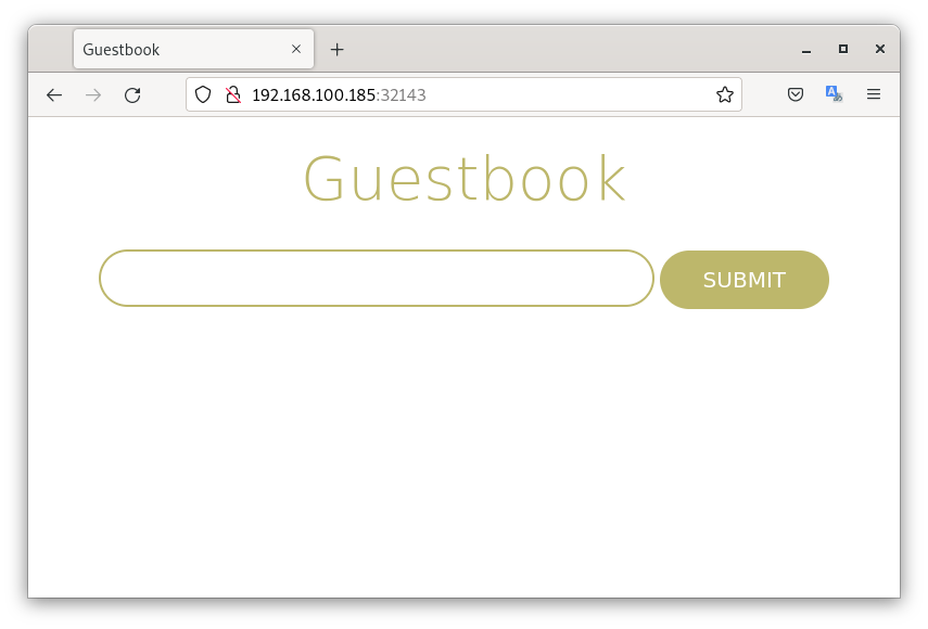 Vamos a crear un Service que nos va a permitir acceder a la aplicación GuestBook desde el exterior, para ello crea un fichero yaml con la definición del Service a partir de la siguiente plantilla: