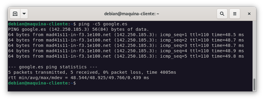 Configuramos la instancia maquina-router para que funcione como router-nat. Comprueba que el cliente tiene acceso a internet. Instala un servidor web en el cliente.