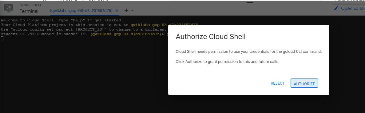 Cuando nos conectemos, se nos habrá completado la autenticació, y el proyecto estará configurado de forma predeterminada para la sesión actual.