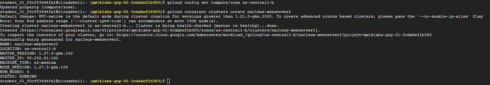 gcloud container clusters create nucleus-webserver1