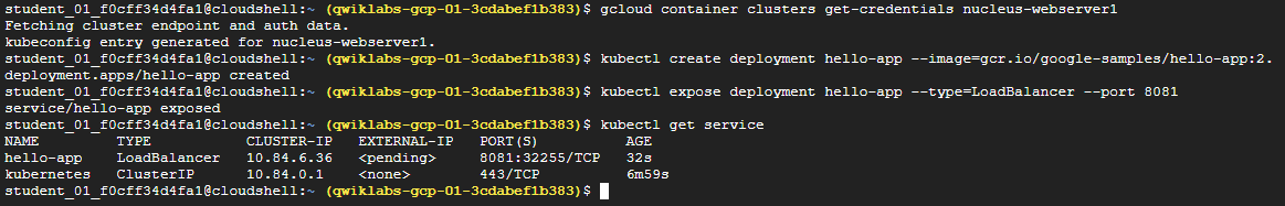 gcloud container clusters get-credentials nucleus-webserver1