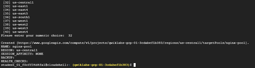 gcloud compute target-pools create nginx-pool