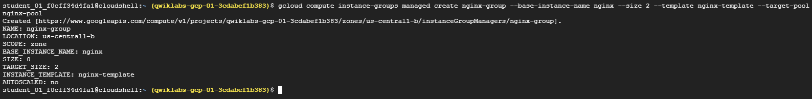 gcloud compute instance-groups managed create nginx-group --base-instance-name nginx --size 2 --template nginx-template --target-pool nginx-pool