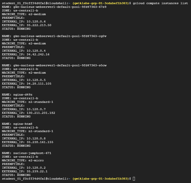 gcloud compute instances list