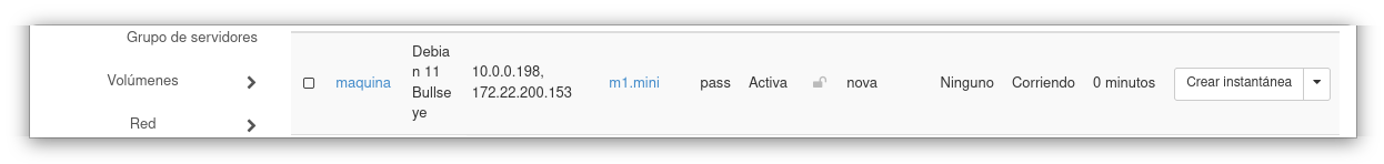 Vamos a utilizar una máquina en openstack, que vamos a crear con la siguiente receta. La receta heat ha deshabilitado el cortafuego que nos ofrece openstack (todos los puertos de todos los protocolos están abiertos). La máquina creada tendrá un servidor web instalado. Vamos a trabajar con la red de las ips flotantes: 172.22.0.0/16.