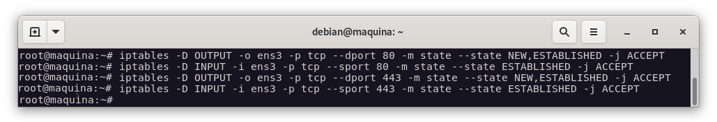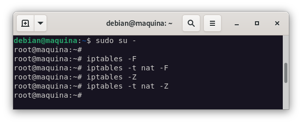Para asegurarnos de que nuestro escenario está limpio, vamos a eliminar todas las reglas que haya en la tabla de filtrado de iptables: