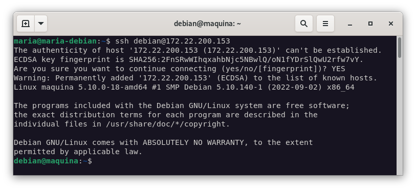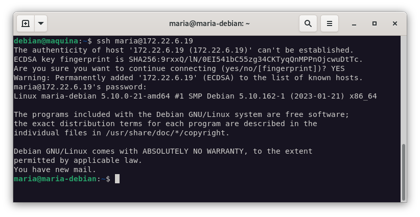 ssh maria@172.22.6.19