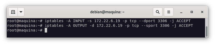 iptables -A OUTPUT -d 172.22.6.19 -p tcp --sport 3306 -j ACCEPT