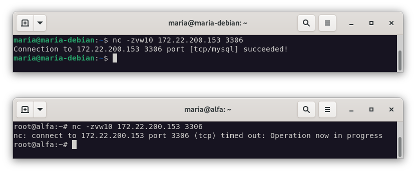 nc -zvw10 172.22.200.153 3306
