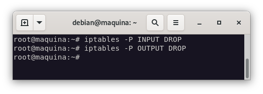 En este punto, vamos a cambiar la política por defecto de la tabla de filtrado de iptables a DROP, para que no se permita nada que no hayamos especificado explícitamente:
