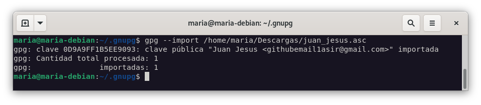 maria@debian gpg --import juan_jesus.asc