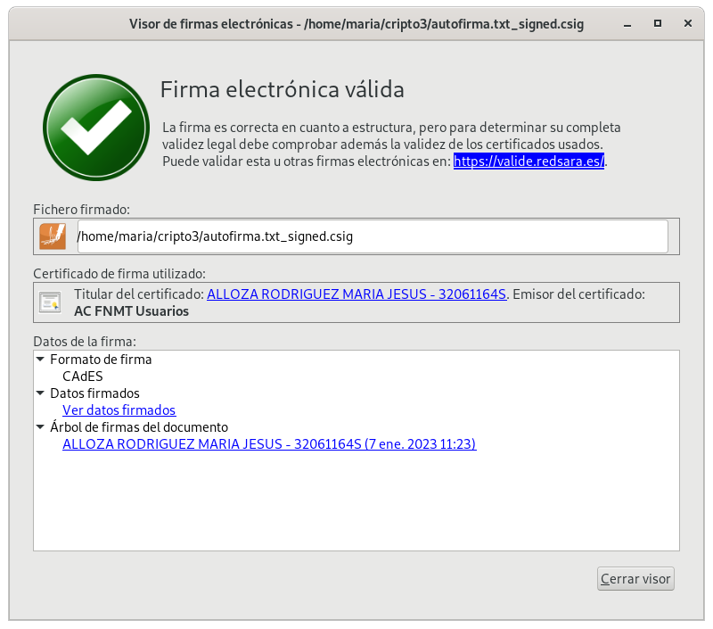 echo "Hola. Soy Maria. Esto es una prueba de autofirma." > autofirma.txt