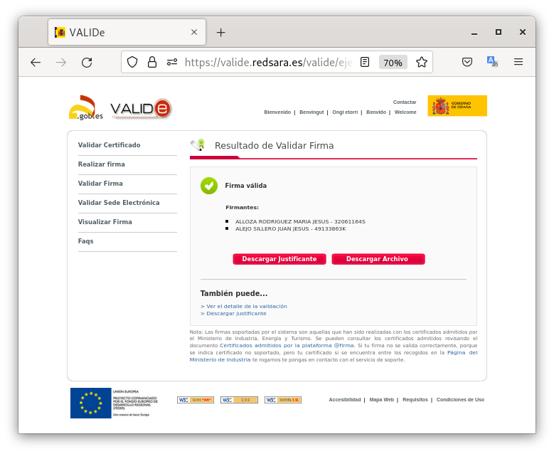 - Una vez creados los documentos, los firmamos, uno con VALIDe y otro con autofirma.