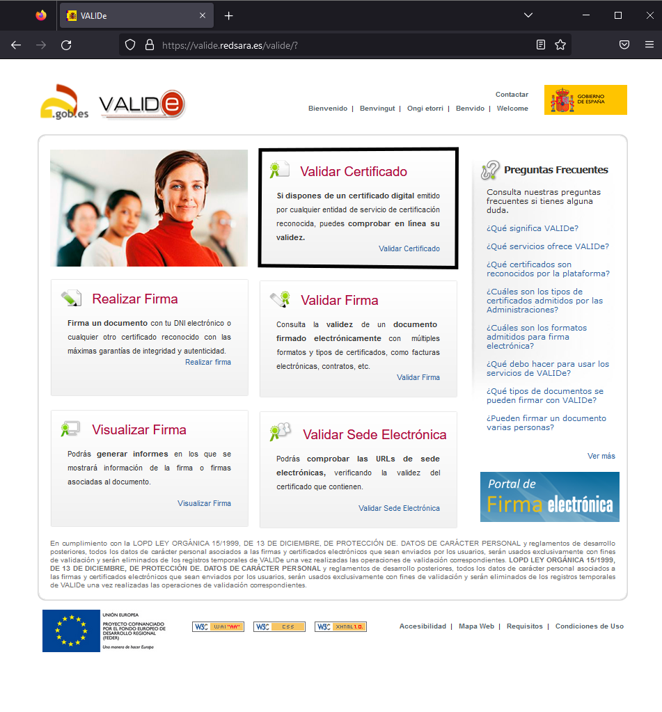 Ingresamos en la página de VALIDe y seleccionamos la opción de