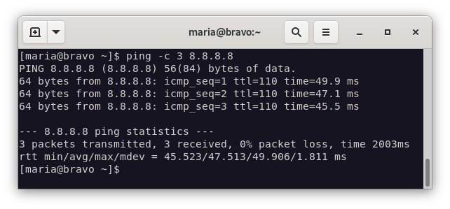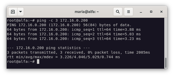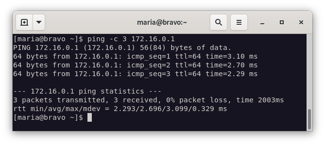 Para probarlo, haremos ping desde la máquina bravo a la máquina alfa.