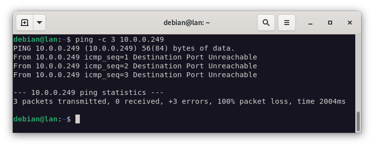 Y desde la maquina LAN hacia la máquina alfa, podemos ver, que se rechaza la conexión.