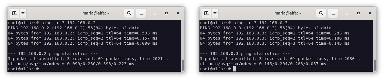 | Alfa | ens8 | 172.16.0.1 |