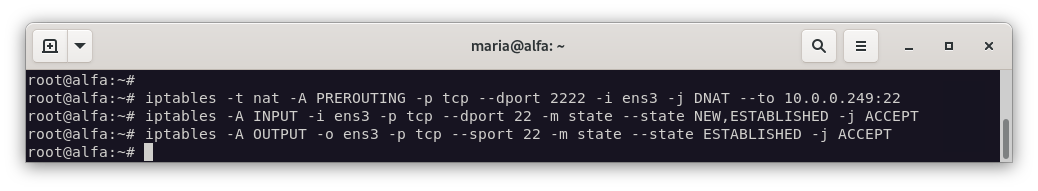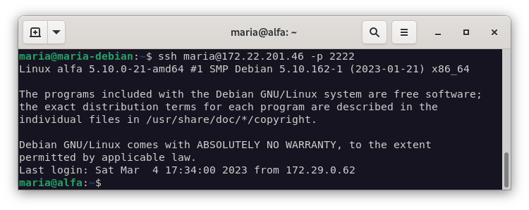 ssh maria@172.22.201.46 -p 2222