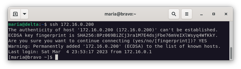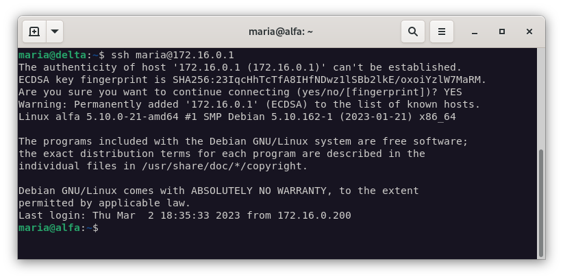 ssh maria@172.16.0.1