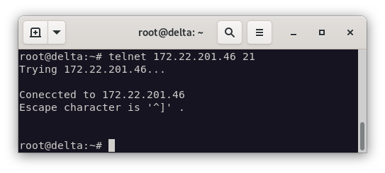 telnet 172.22.201.46 21