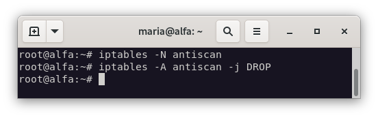 iptables -A antiscan -j DROP