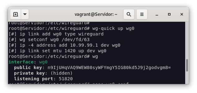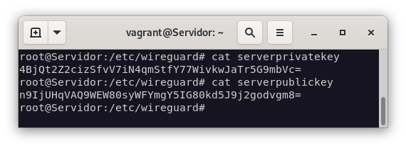 Nos dirigimos al directorio de configuración de WireGuard, creamos las claves del servidor que nos servirán para configurar los clientes y el fichero de configuración del servidor.