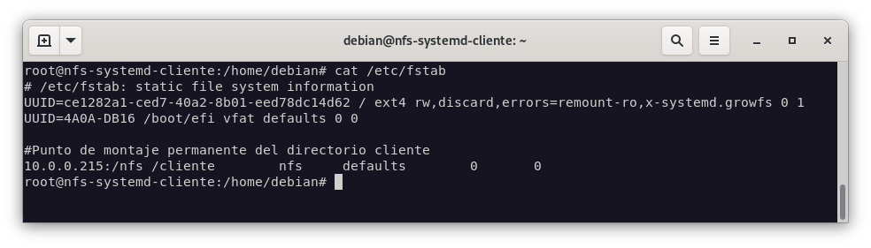 10.0.0.215:/nfs /cliente nfs defaults 0 0