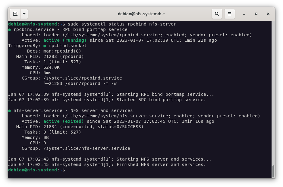 systemctl status rpcbind nfs-server